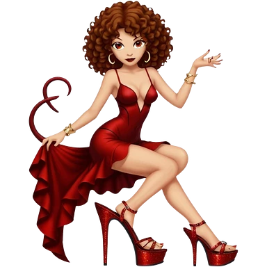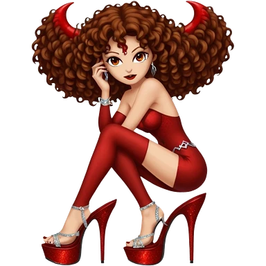 Lilith symbol seductress evil brown curly haired sexy succubus woman with clear glittery platform heels emoji