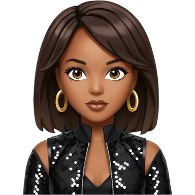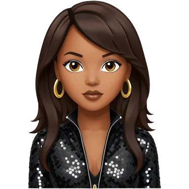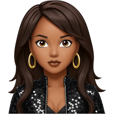 LeToya Luckett with long dark brown hair, black sequin tour outfit emoji
