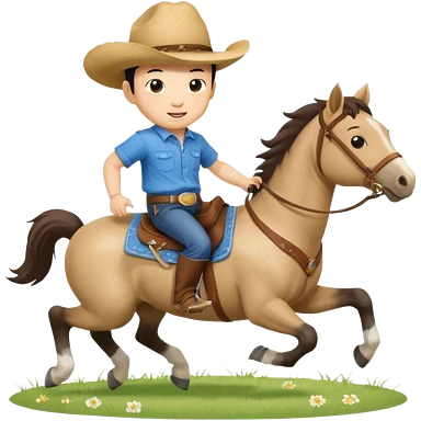 l little chinese baby riding on a cute horse running on the grass with 2026 year label emoji