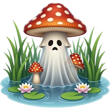 ghost of Ophelia lies in the water wrapped in toadstool and water lily - a scene from the original painting by John Everett Miles emoji