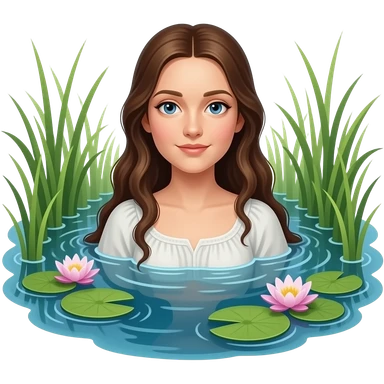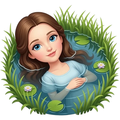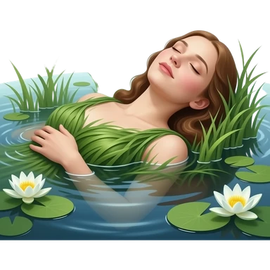 realistic ethereal Ophelia lies in the water wrapped in grass and water lilies - a scene from the original painting by John Everett Miles emoji