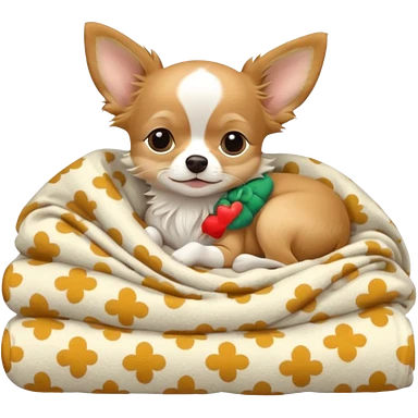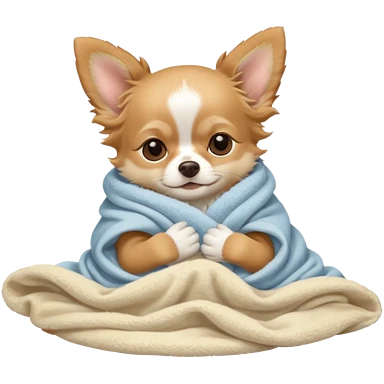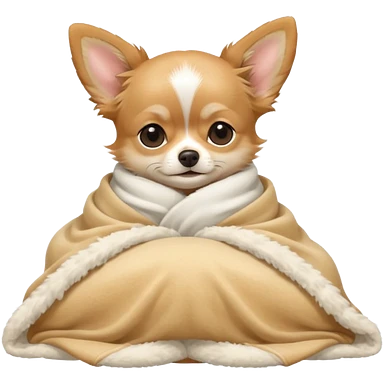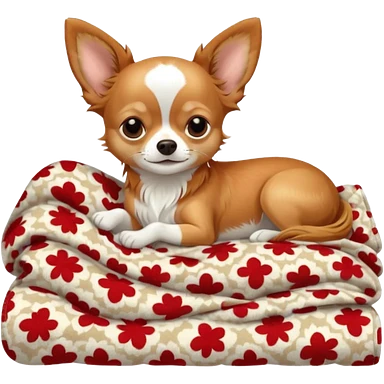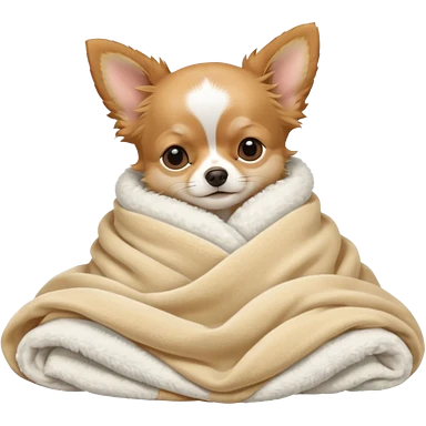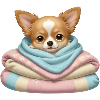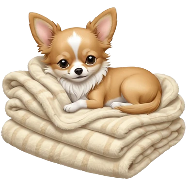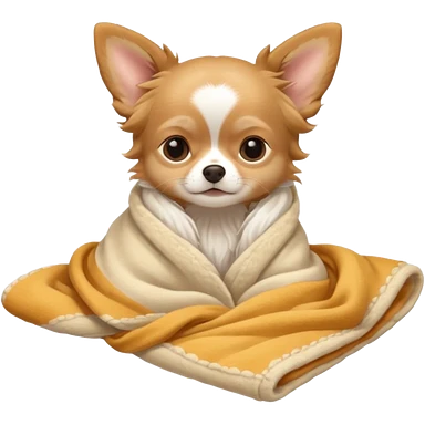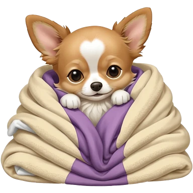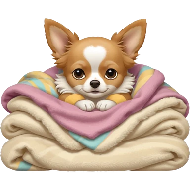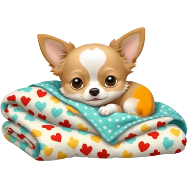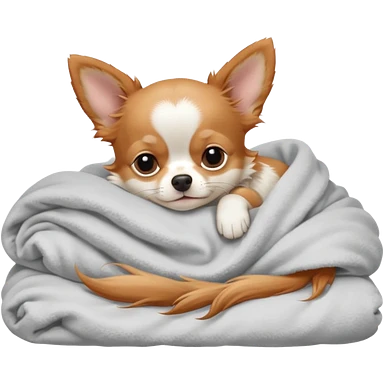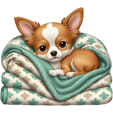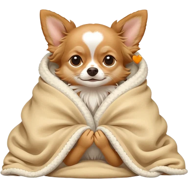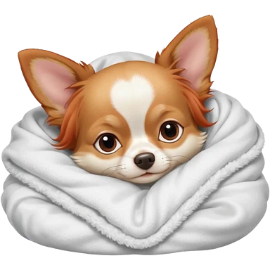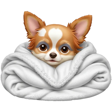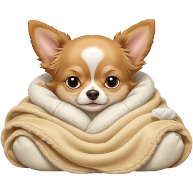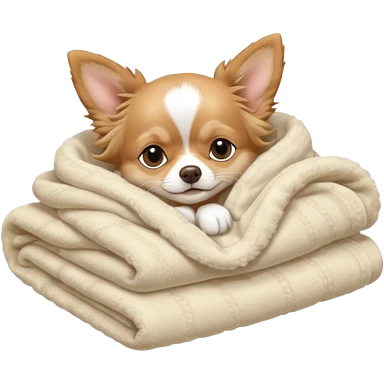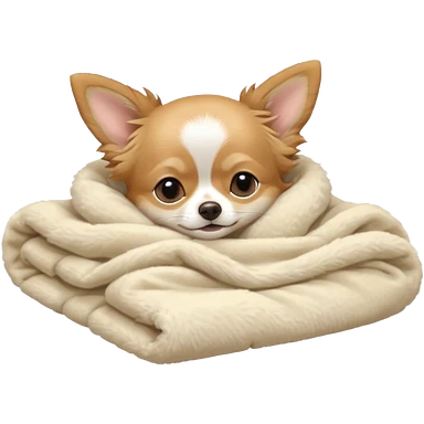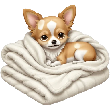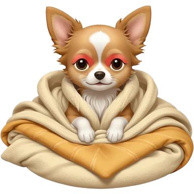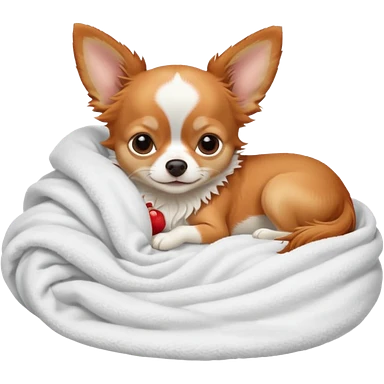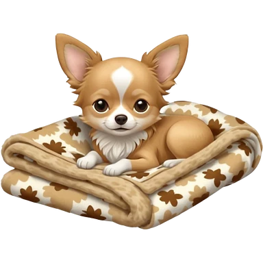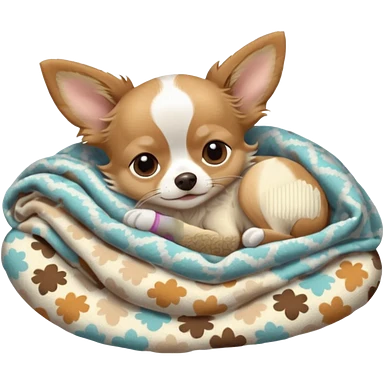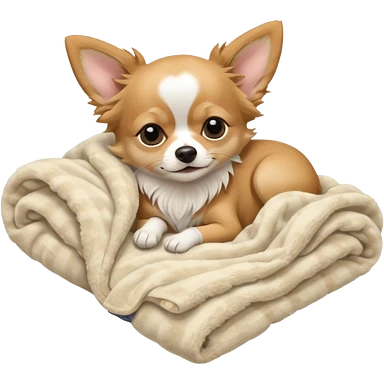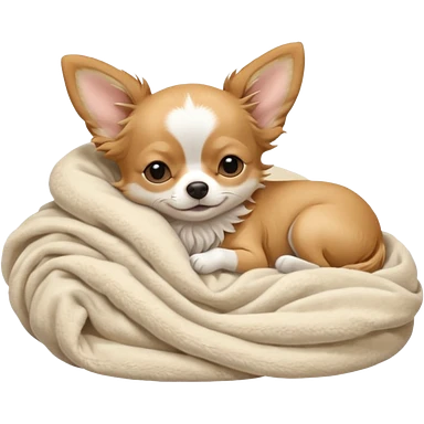 Long haired chihuahua, beige head, white chest and socks, sleeping cutely under blanket emoji