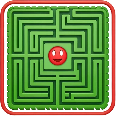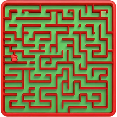 Create a realistic emoji of a maze with different patterns in red which show the wrong way and one way which shows the right way across the maze in green emoji