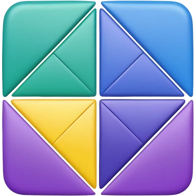 Bandera color azul amarillo morado y verde, seccionada en 4 partes iguales cuadradas emoji