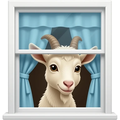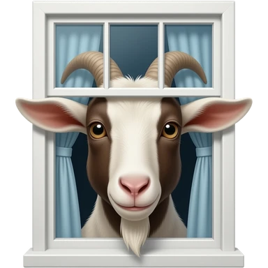 una cabrita mirando por la ventana de una casa, realista! emoji