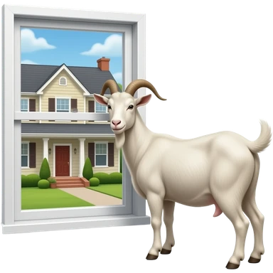 una cabrita mirando por la ventana de una casa entera, realista! emoji