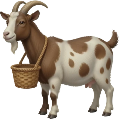 cabra con manchas marrones y una cesta. La cabra con pelos y realista emoji