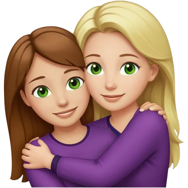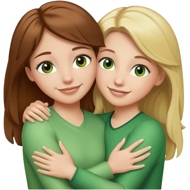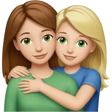 Maman avec les cheveux marrons les yeux marrons et la peau blanche, la fille avec les cheveux blond les yeux verts et la peau blanche, qui se font un câlin emoji