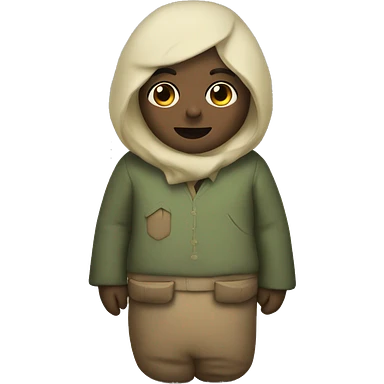 Light skinned or fair skinned, LONG curly hair (shoulder length) Nubian nose, full lips with a natural pink-brown tone, dark brown almond eyes, Slight arched eyebrows, full brown. wearing a black long sleeve top emoji