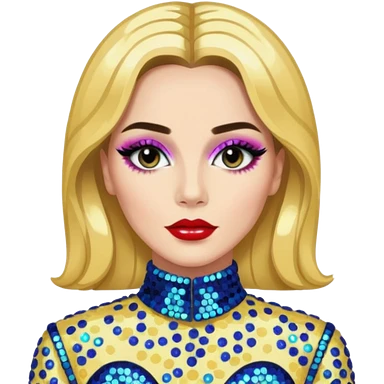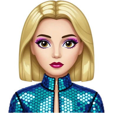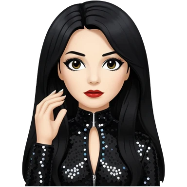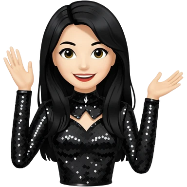 Janet Planet, Female Electropop Singer from Confidence Man with long black hair, black sequin outfit emoji