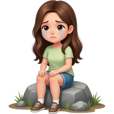 una chica sentada en una roca, i tiene el pelo largo de color avellanaesta cansada emoji