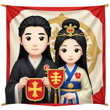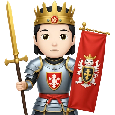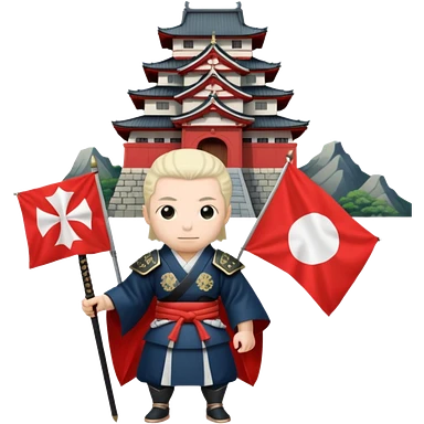 Japanese Castle Lord, Lord standing before a Japanese castle backdrop, holding a banner with family crest. emoji