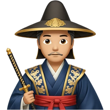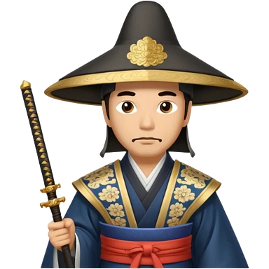 Samurai lord, Elegant noble in long robes with tall hat, holding a scroll of orders. emoji