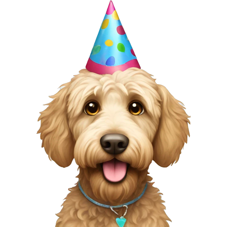 Labradoodle with a birthday party hat emoji | AI Emoji Generator