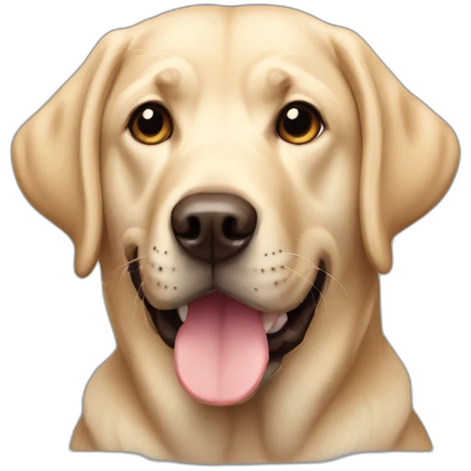 labrador retriever yellow fur sitting, one paw on chin, thoughtful face, emoji style emoji