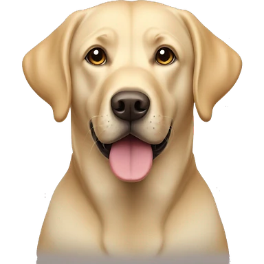 labrador retriever yellow fur sitting, one paw on chin, thoughtful face, emoji style emoji