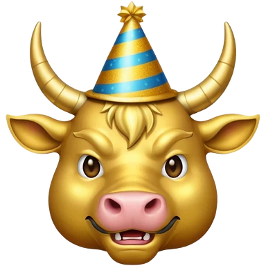 Angry New Year's Eve Dressed Golden Bull Emoji emoji