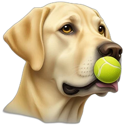 a yellow labrador with honey eyes with a tennis ball in the mouth emoji