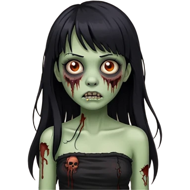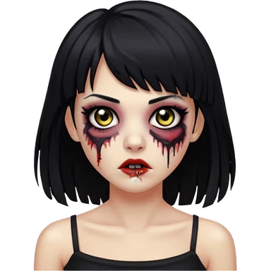 Faça uma mulher zumbi de franja cabelo longo preto com tub top preto e delineado emoji