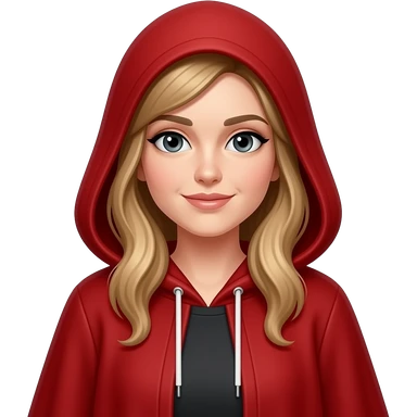 Lady, whole body, with red long cape with hoodie emoji