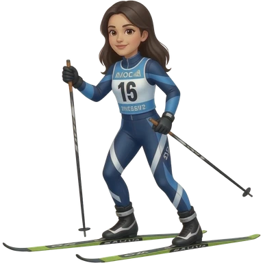lady dark hair Latina cross-country skier emoji