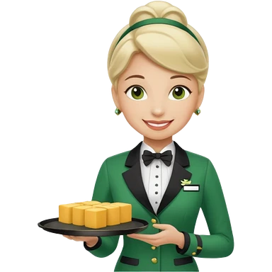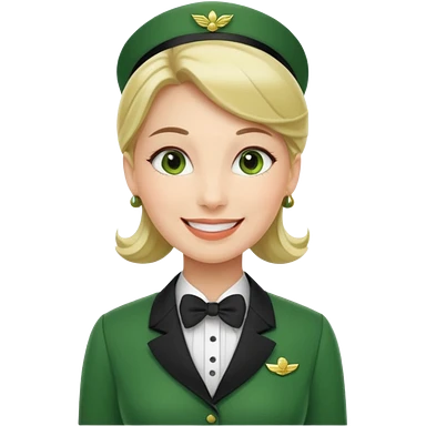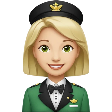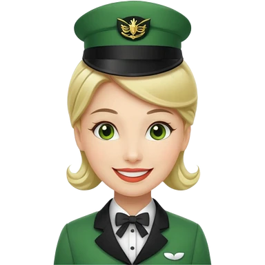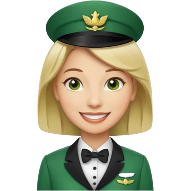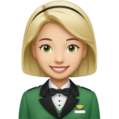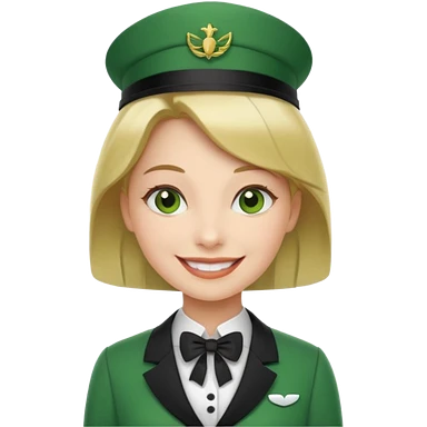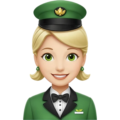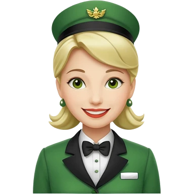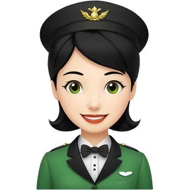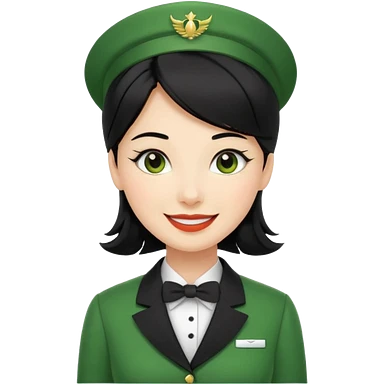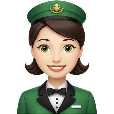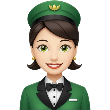 Lady hotel butler with green uniform black hair and just a lite bit brown skin and Arabic face with our hat please emoji | AI Emoji Generator