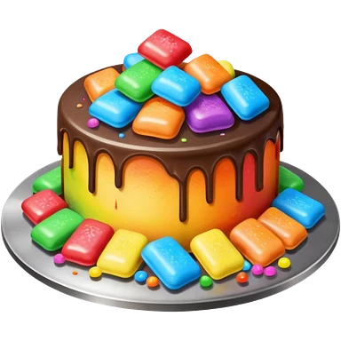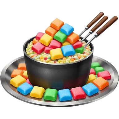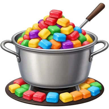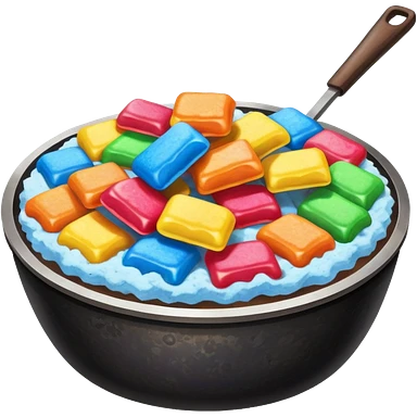 Blackstone grill with pile of mashed up rainbow candies and hibachi flippers emoji