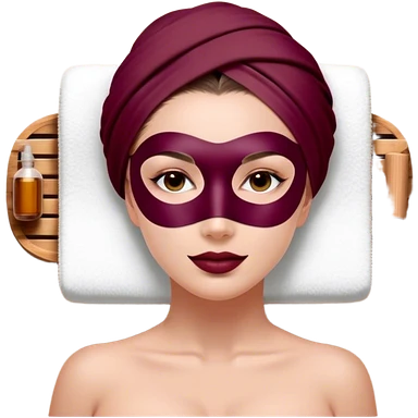 Lady with face mask Burgundy spa beauty full face relaxing emoji | AI Emoji Generator