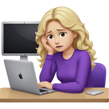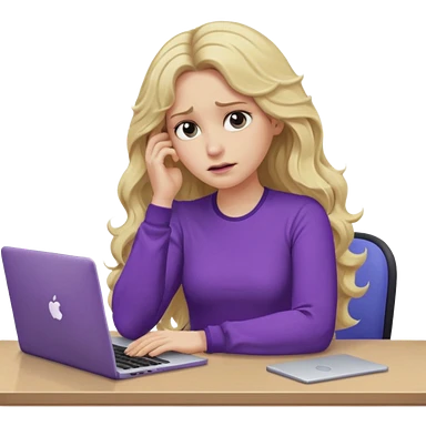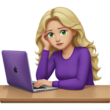 lady with long blonde wavy hair, purple top, green eyes throwing her with a laptop looking exhausted emoji | AI Emoji Generator