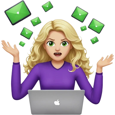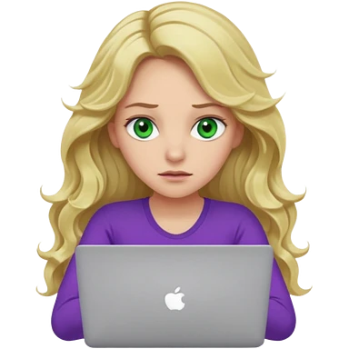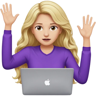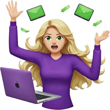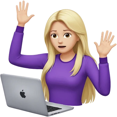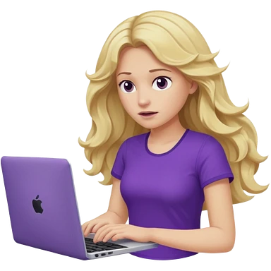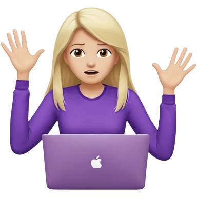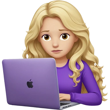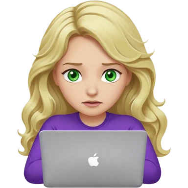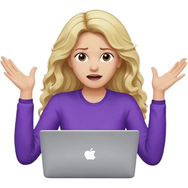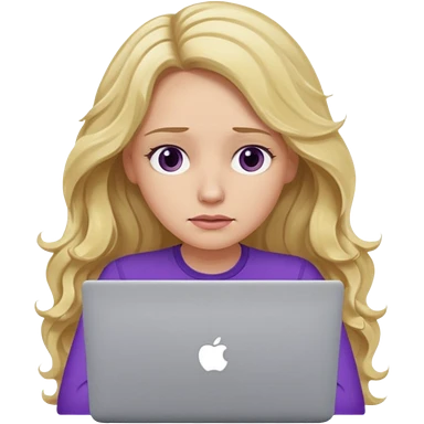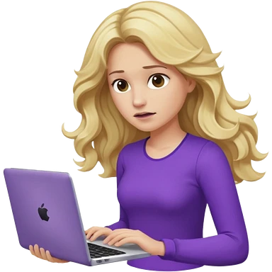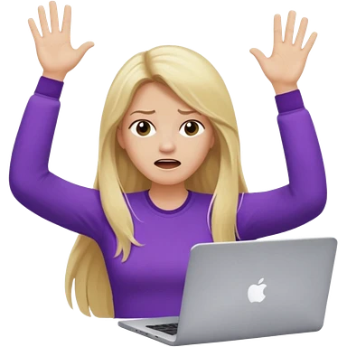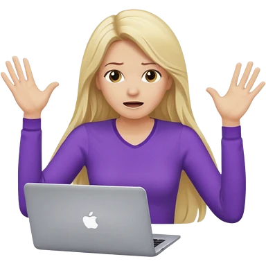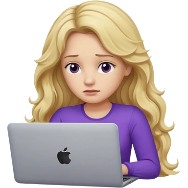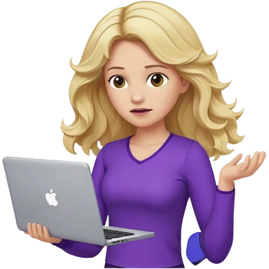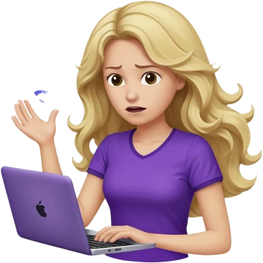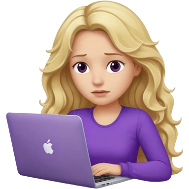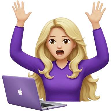 lady with long blonde wavy hair, purple top throwing her with a laptop looking defeated emoji | AI Emoji Generator
