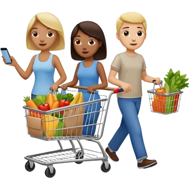 Lady with long brown hair and brown eyes with shopping cart and coupons emoji