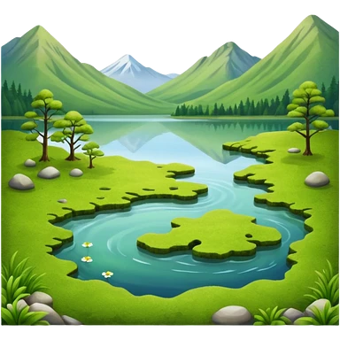 lake with moss on top with surrounding scenery emoji | AI Emoji Generator