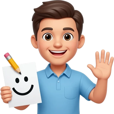 Tạo emoij cầm bút chì và giấy kèm biểu tượng cảm xúc (lưu ý phải là biểu tượng 😁 làm thêm tay ✋ này nữa)) emoji