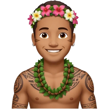 Hawaiian Polynesian male with tribal tattoo sleeve emoji