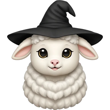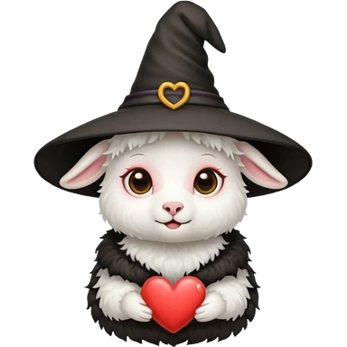 Little lamb with black heart eyes wearing a witch’s hat emoji