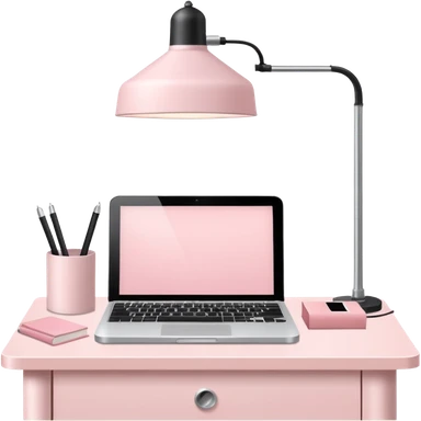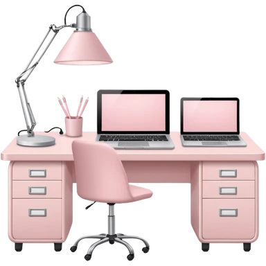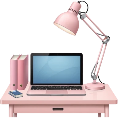 Pale Pink Big Workstation and Light Pale Pink book and Light Pale Pink table lamp and Light Pale Pink computer for Lease emoji