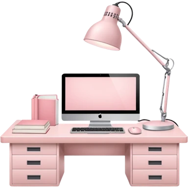 Pale Pink Big Workstation and Light Pale Pink book and Light Pale Pink Desk lamp and Light Pale Pink computer for Lease emoji