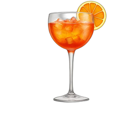 Aperol spritz in balloon glass with aperol spritz logo on it emoji