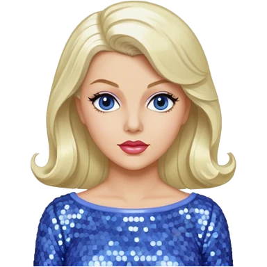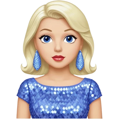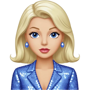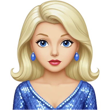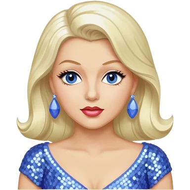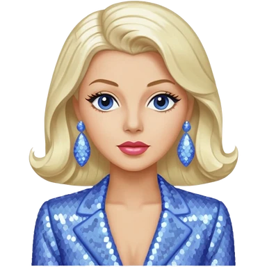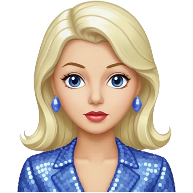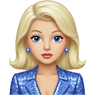 Lana Turner with long platinum blonde hair, periwinkle sequin outfit emoji
