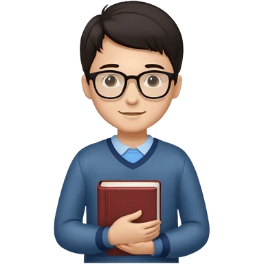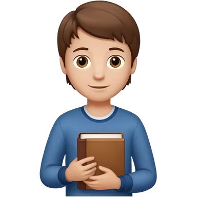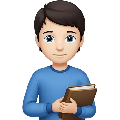 պետք է լինի կանգնած տղա որի աջ ձեռքում լինի գիրք մի փոքր ժպտա մուգ մազերով emoji