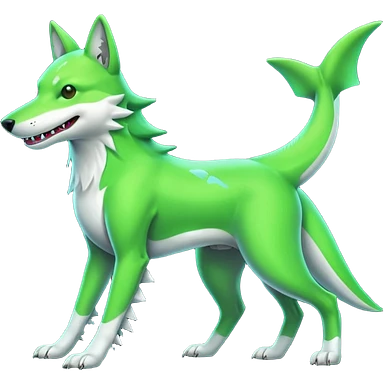 Neon-green-landhai-dog-sergal-wolf-canine, with a shark tail, emoji