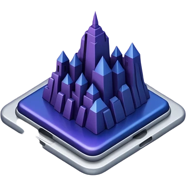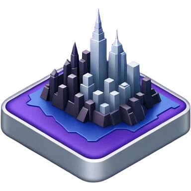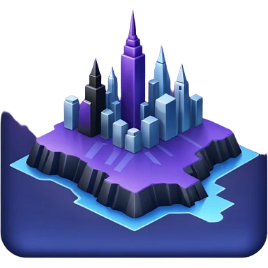 Landmark icon above the map. Colors: dark purple, dark blue, black, silver. Style: metallic, realistic emoji