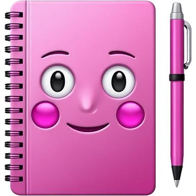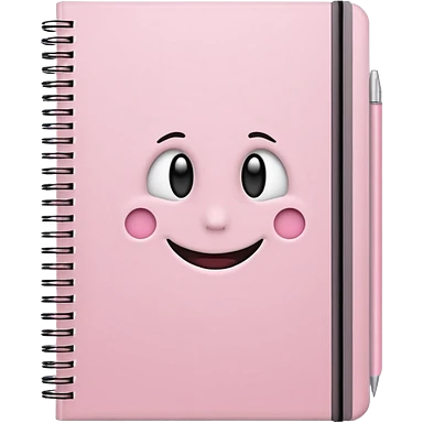 University lecture hall with pastel pink notebook and beige laptop open emoji