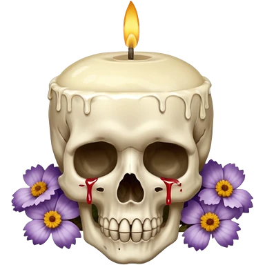 Large black candle on a skull covered in dried flowers emoji | AI Emoji Generator
