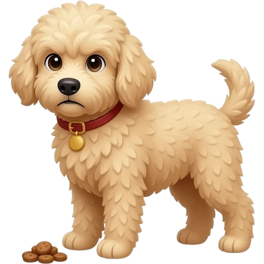 large goldendoodle, light tan, with a look of judgement wanting food emoji | AI Emoji Generator