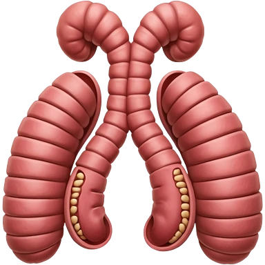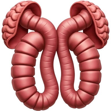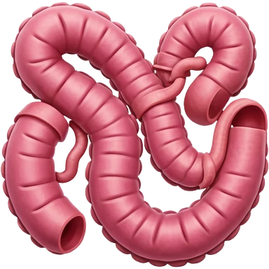 the intestines of a dog from a ventral view. Include the small intestine coiled in the middle, the large intestine connected to it, and the colon running down the left side. Make sure the positions are realistic emoji