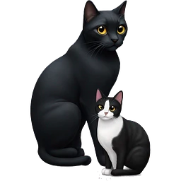 Large tuxedo cat with a spot on his nose and small white cat with grey spots sitting next to each other emoji | AI Emoji Generator