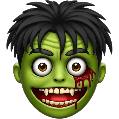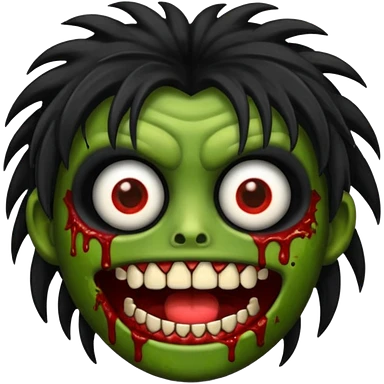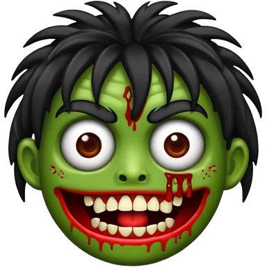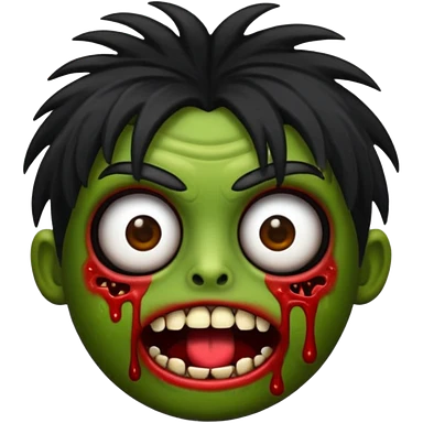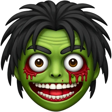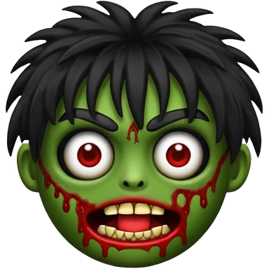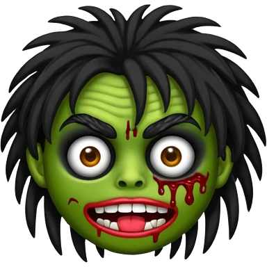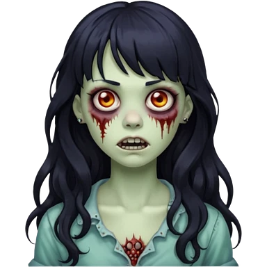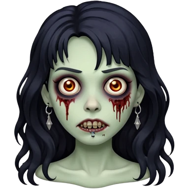 crie um kamoji estilo zumbi (feminina) com o cabelo comprido levemente ondulado e com franja preto, coloque alguns piercing emoji