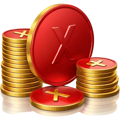 Apple emoji style, glossy 3D icon a red prohibition symbol (🚫) over a stack of shiny golden coins. The coins have soft reflections, rounded edges, and a small red X embossed on the top coin emoji