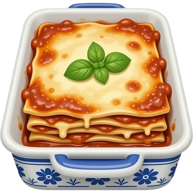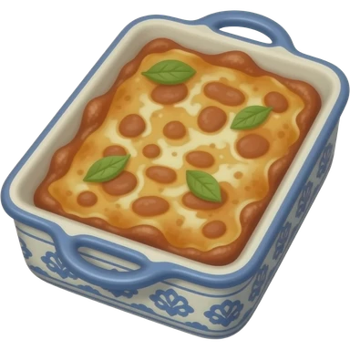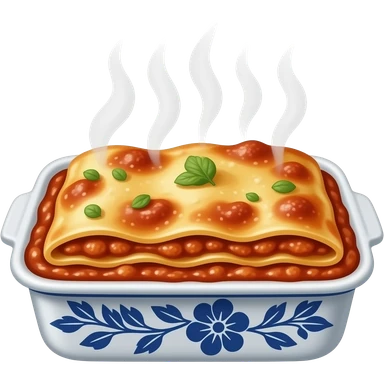 lasagna in a cerámic tray with porcelain design emoji